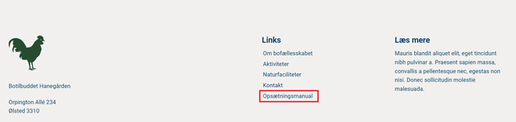 På hvert subsite i kataloget er der oprettet en artikelside med navnet Opsætningsmanual. Linket til siden vil være at finde i navigationen i toppen af siden og/eller i footeren i bunden af siden.